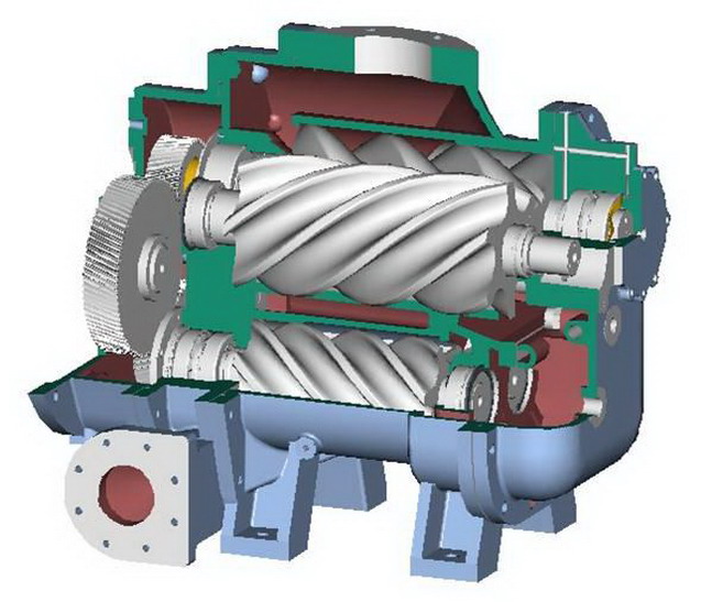 ●兩級壓縮采用等壓比來設定級間壓力,故每級壓縮比都要比單級壓縮比降低很多,轉(zhuǎn)子之間的回流泄漏量大大降低了,容積效率和絕熱效率得到了大大提高,相應的提升了壓縮的產(chǎn)氣量。
